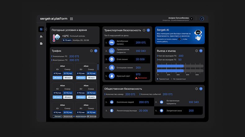 Здесь происходит централизованное хранение и очистка данных от искажений. Система строит предиктивные модели транспортных потоков и поведенческую аналитику для предотвращения инцидентов. На основе этих данных формируются персональные отчеты и рекомендации для акиматов, полиции и коммунальных служб.