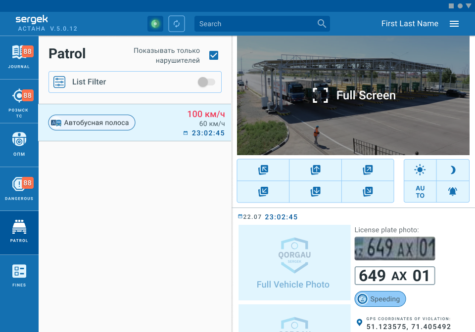 The Sergek Qorgau mobile application is intended for police officers and serves as an innovative tool to increase the efficiency of identifying violators. It allows quick response to alerts, real-time vehicle search, detection of dangerous driving, violation checks, and simplifies operational-preventive measures by enabling rapid issuance of orders and entering data on unidentified vehicles.