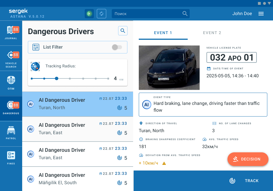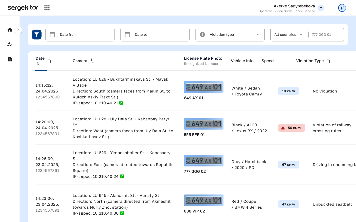 TOR (from the Kazakh word for “network”) is a national digital road safety platform that consolidates all types of violation-detection systems across Kazakhstan.