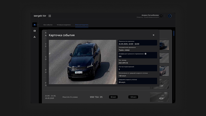 Мобильный интеллектуальный аппаратно-программный комплекс дорожной безопасности. Комплекс предназначен для фото-видео фиксации нарушений, объектов и событий в зоне контроля комплекса с автоматической передачи информации на сервер и получения данных об объектах или событиях. Данный продукт обеспечивает фиксацию нарушений скоростного режима, остановки в неположенном месте и движения по выделенной полосе Bus Line. Благодаря автоматизации процессов повышается скорость реагирования и оперативность работы. Система интегрируется с мобильным приложением Qorgau, позволяя автоматически проверять и фиксировать государственные регистрационные номера по целевым базам. Дополнительно предусмотрена интеграция с платформой Sergek для валидации нарушений и исключения дублирующих фиксаций.