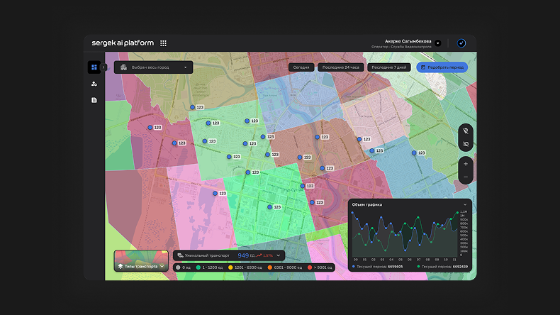 Платформа Sergek — это интегрированная AI-платформа для управления трафиком и мобильностью, представляющая собой систему умного города. Она объединяет сервисы и данные на стороне клиента для мониторинга и анализа, управления и автоматизации.